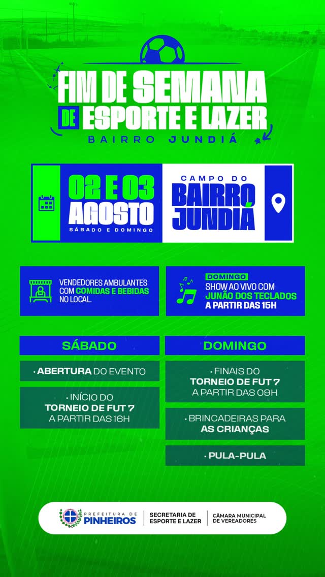 - O evento irá acontecer no campo do bairro Jundiá e promete diversão para toda a família, com atrações esportivas, musicais e atividades recreativas.