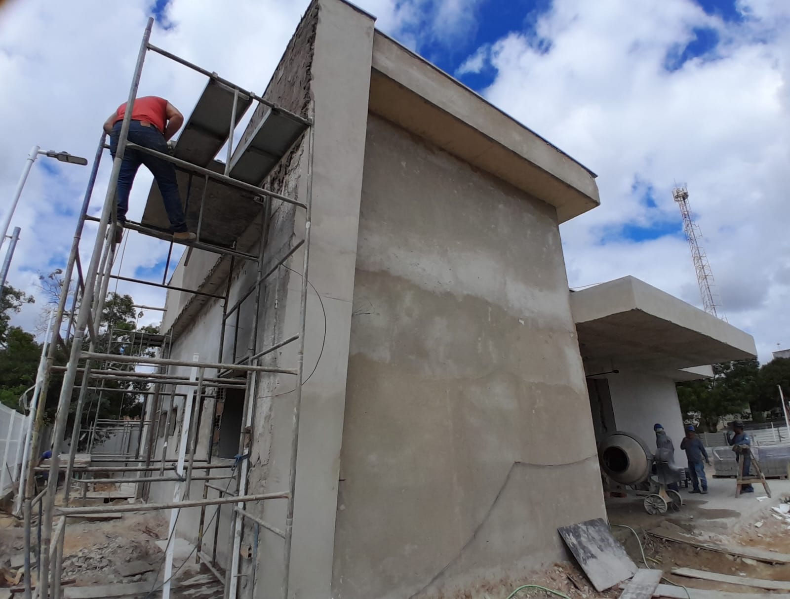 - Atualmente, as equipes trabalham na instalação do gesso do teto, na aplicação de massa corrida nas paredes e na pavimentação dos estacionamentos. Para a próxima semana, está prevista a colocação dos corrimãos de acesso. Nos últimos dias, já foram finalizados serviços como a instalação da iluminação, da cobertura e do sistema de para-raios.