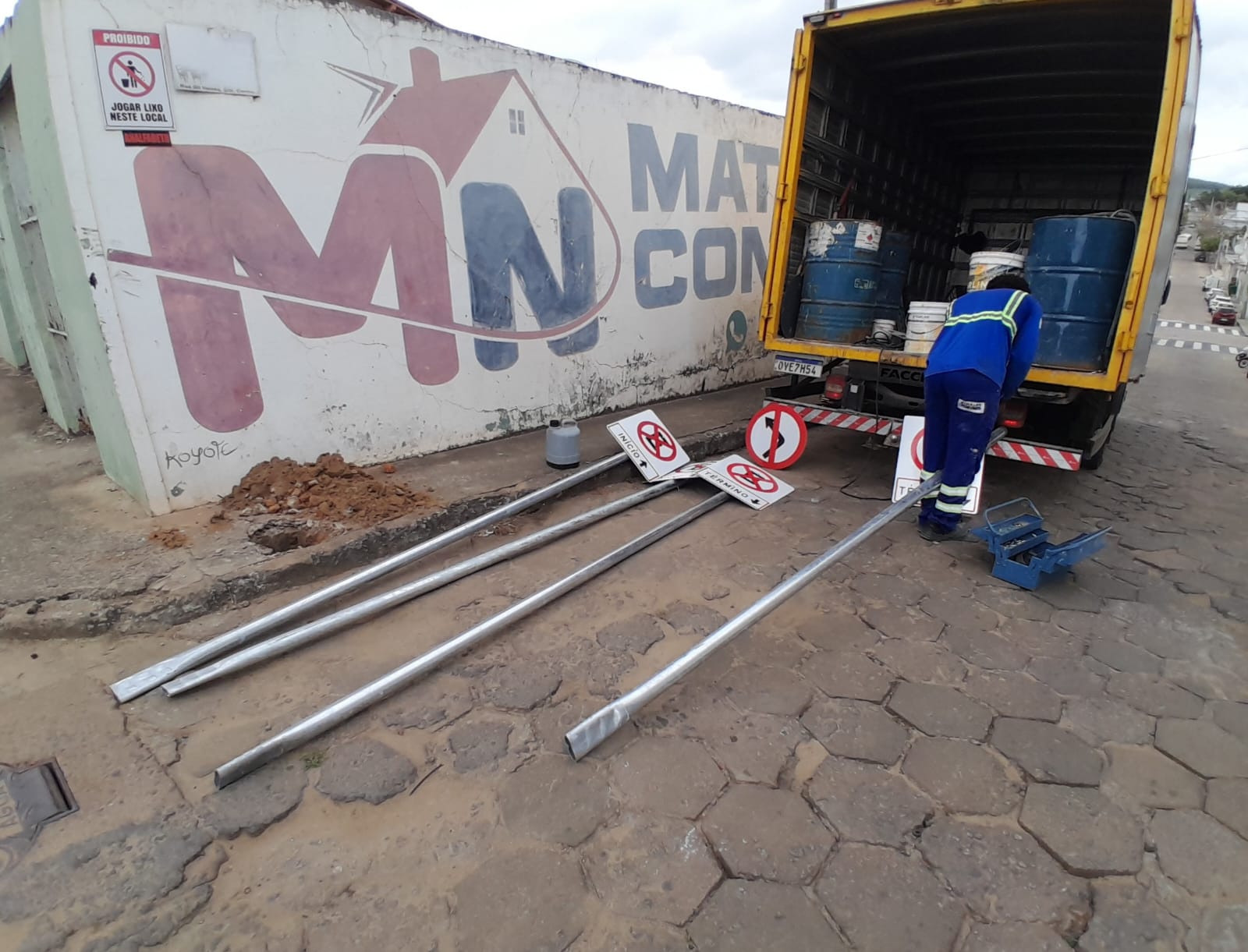 - Nesta quinta-feira (11), equipes estão espalhadas por diferentes pontos da cidade realizando demarcações, pintura das vias e instalação de placas. O trabalho contempla tanto a sinalização horizontal quanto a vertical.