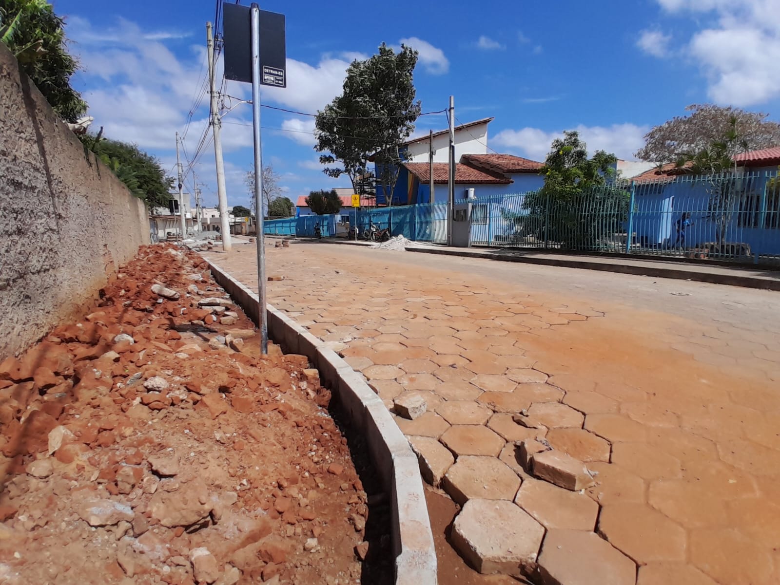 - Parte do calçamento antigo, desgastado e desnivelado foi removido e substituído por novos blocos. As guias de concreto que compõem o meio-fio também receberam renovação, garantindo mais organização e segurança ao espaço.