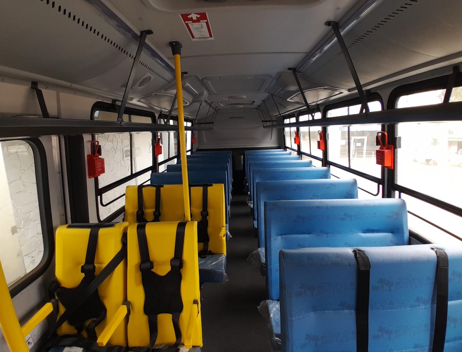 - O ônibus, da marca Iveco, é moderno e equipado para garantir mais segurança e conforto aos passageiros. Entre os diferenciais, estão sistema de climatização, 44 assentos estofados, conexão wi-fi, portas USB para recarga de dispositivos eletrônicos, além de compartimentos interno e externo para bagagens.