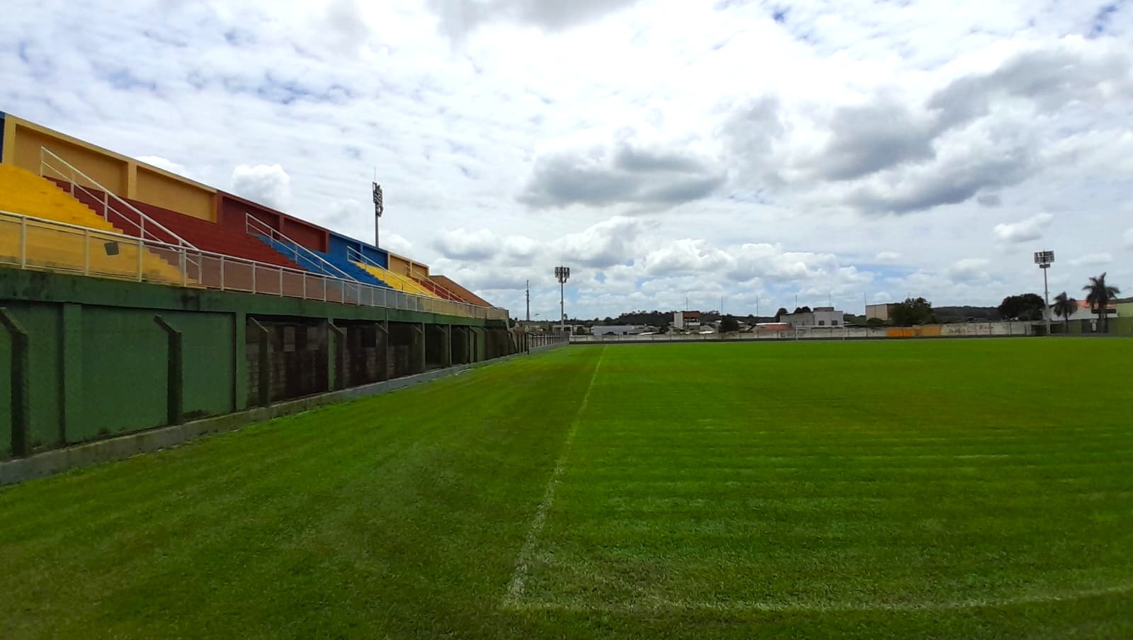 - A grama está sendo aparada e, em seguida, será feita a demarcação dos setores do campo, garantindo melhores condições para os atletas e para o andamento da competição.