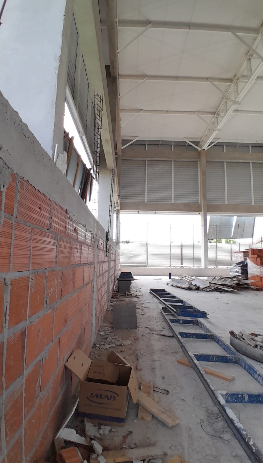 - No local, já estão em fase de conclusão os muros localizados na parte dos fundos da quadra, junto à arquibancada, além da instalação dos suportes e dos tubos metálicos que irão receber os alambrados.