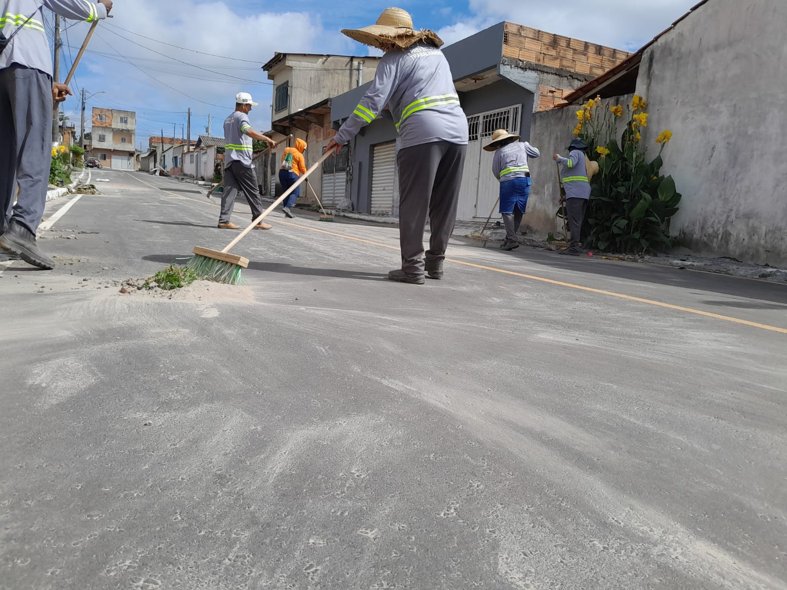 - Diversas equipes estão mobilizadas na varrição de ruas e calçadas, no recolhimento de lixo, folhagens e na retirada de bancos de areia formados em vias públicas, especialmente em decorrência do período chuvoso.