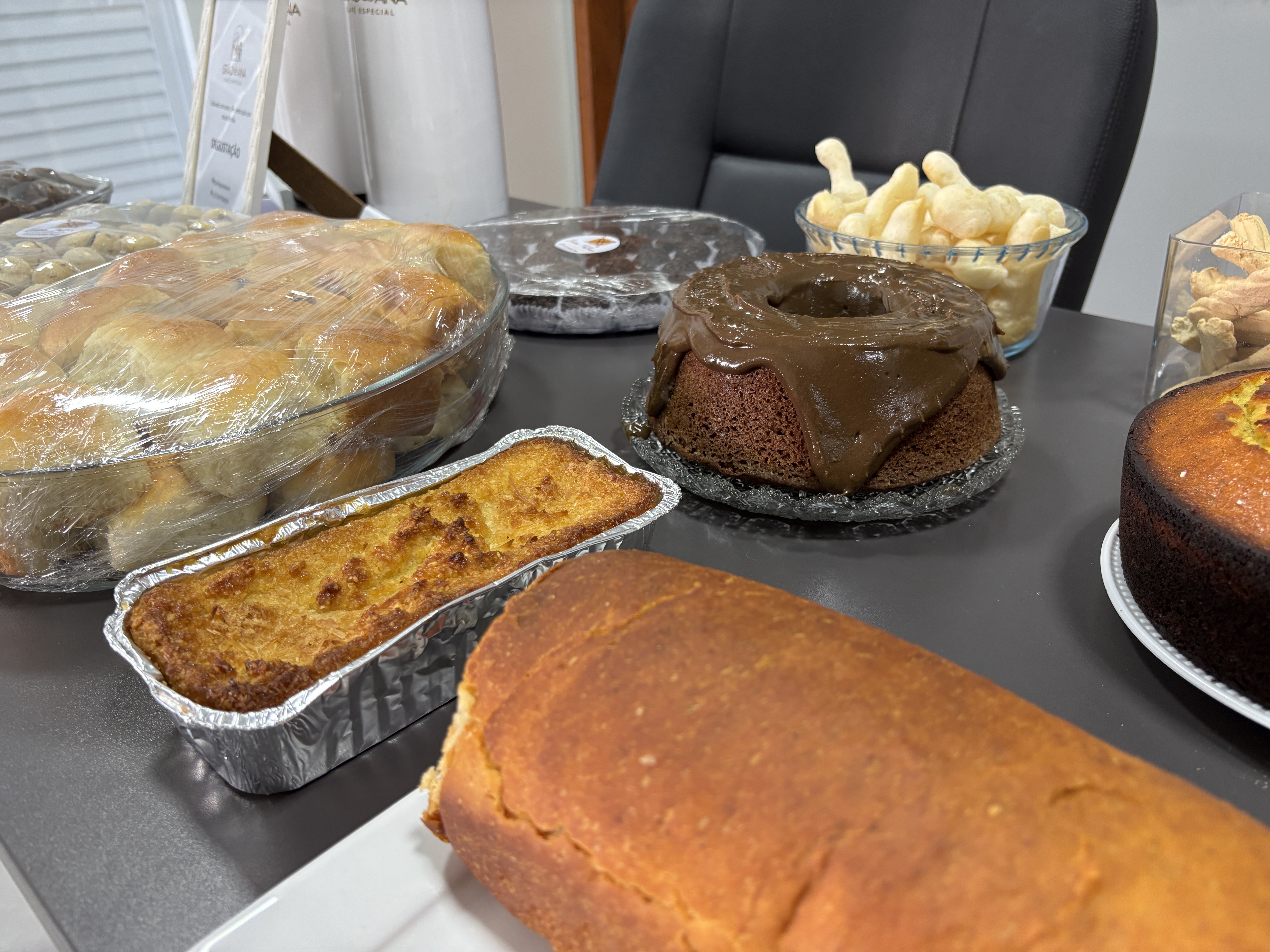 - As guloseimas oferecidas durante o evento foram produzidas por moradores que concluíram cursos de culinária voltados ao aproveitamento do café e seus derivados.